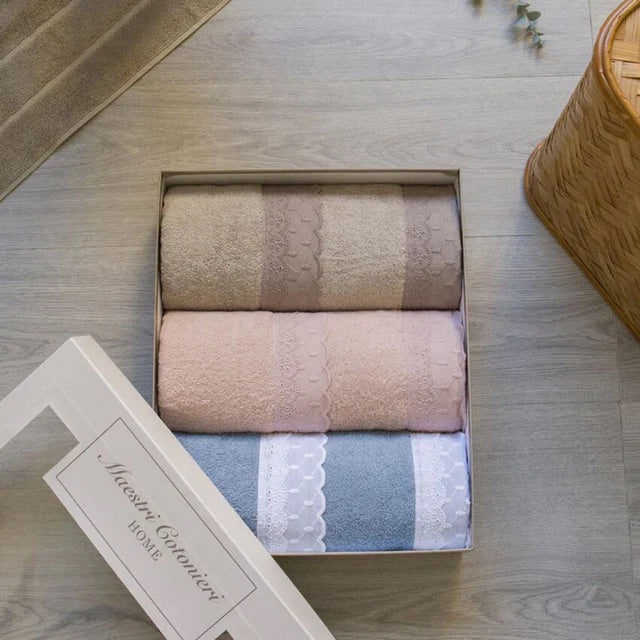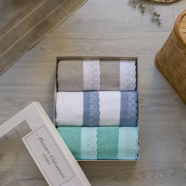 Fine ed elegante sono le caratteristiche principali del set di asciugamani Cloud di Maestri Cotonieri, custoditi in questa particolare confezione ideale anche come regalo!