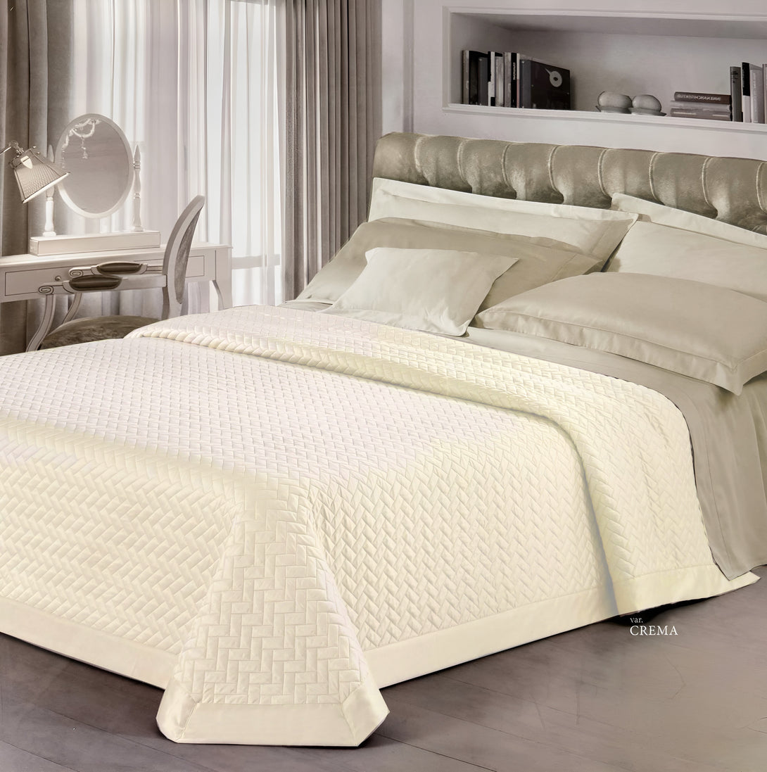 Esalta la tua camera da letto con l'eleganza senza tempo del trapuntino Malaga. Realizzato in raso di poliestere, questo copriletto unisce lusso e comfort, con una finitura liscia e luminosa che dona un tocco sofisticato a qualsiasi ambiente.