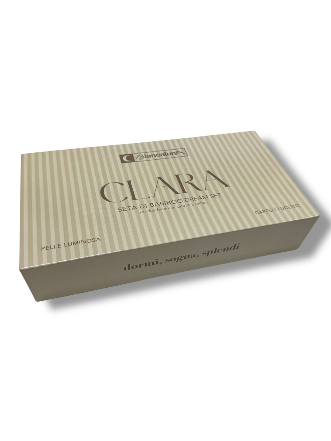Scopri il piacere di un riposo che si prende cura di te con la Coppia di Federe Clara in seta di bamboo, firmata Biancaluna.