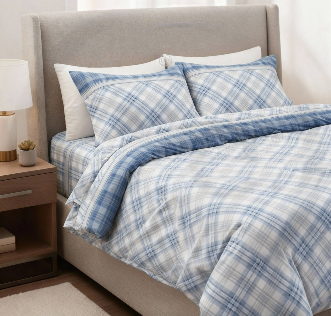 Immergiti in un comfort senza tempo con il Completo Lenzuola Scottish, impreziosito da una raffinata fantasia scozzese che dona alla tua camera da letto un tocco classico e accogliente. Ideale per chi ama uno stile elegante ma discreto, questo completo unisce praticità e gusto senza rinunciare alla qualità del made in Italy.