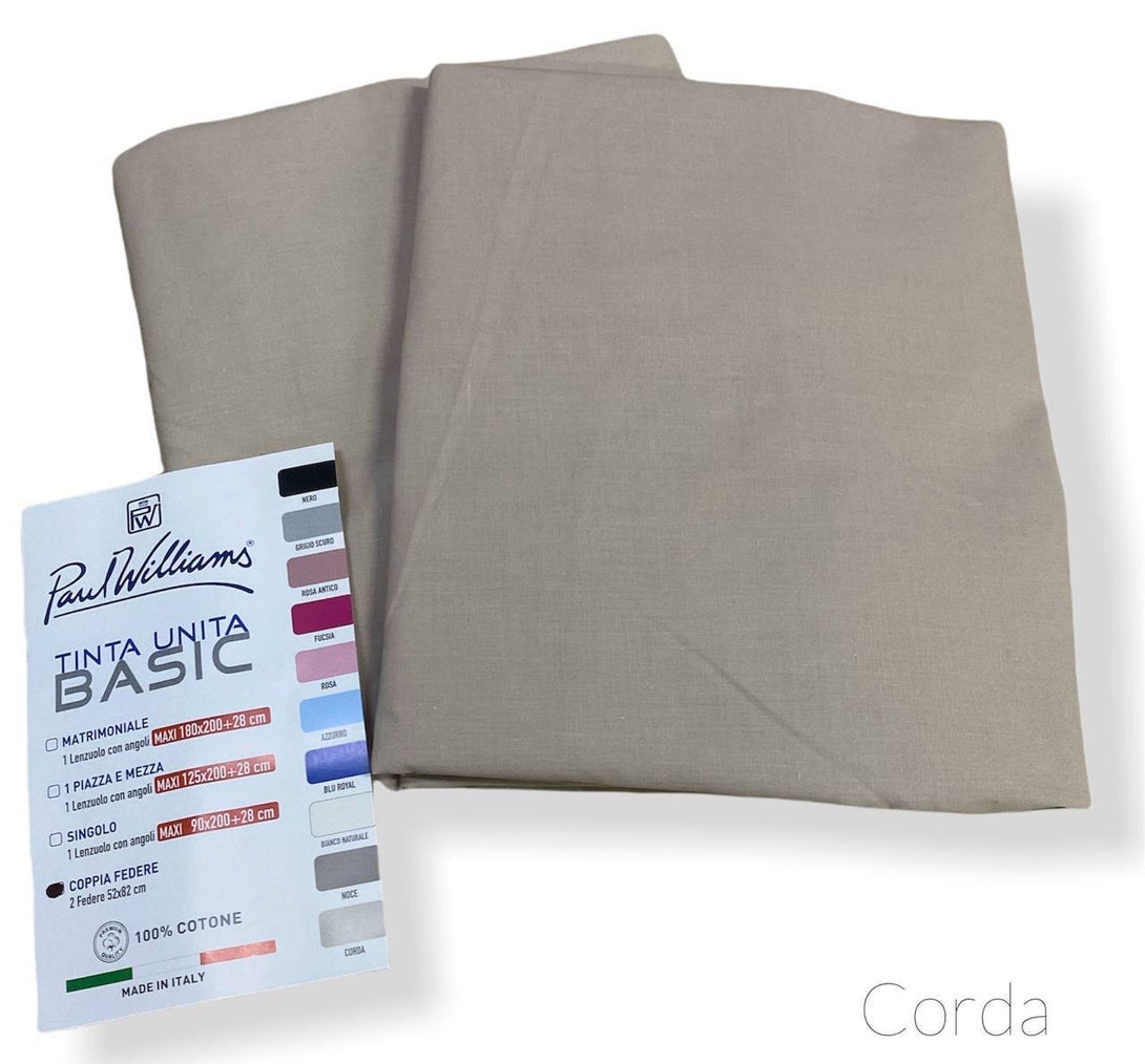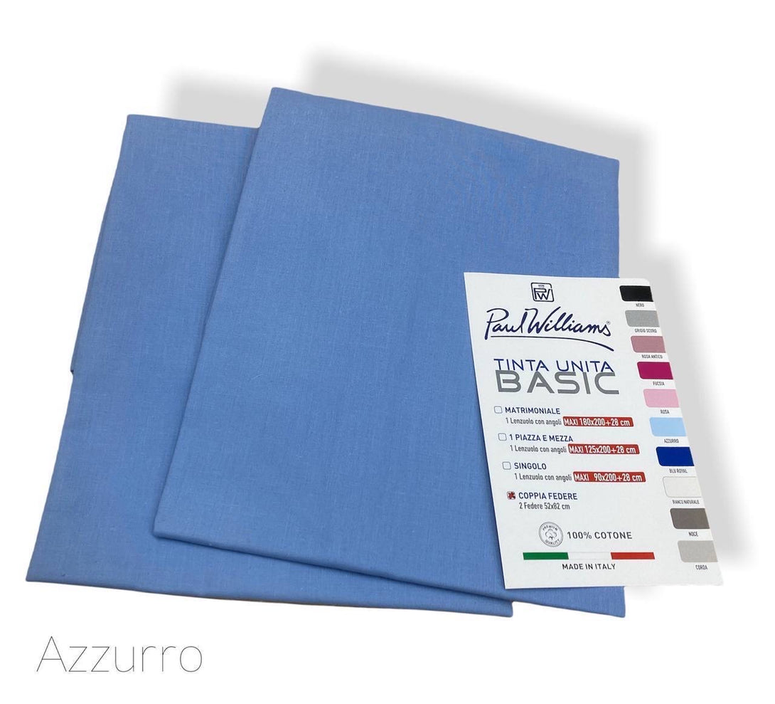 Coppia federe 100% cotone tinta unita, prodotte interamente in Italia, realizzate con tessuti di pregiatissima qualità.