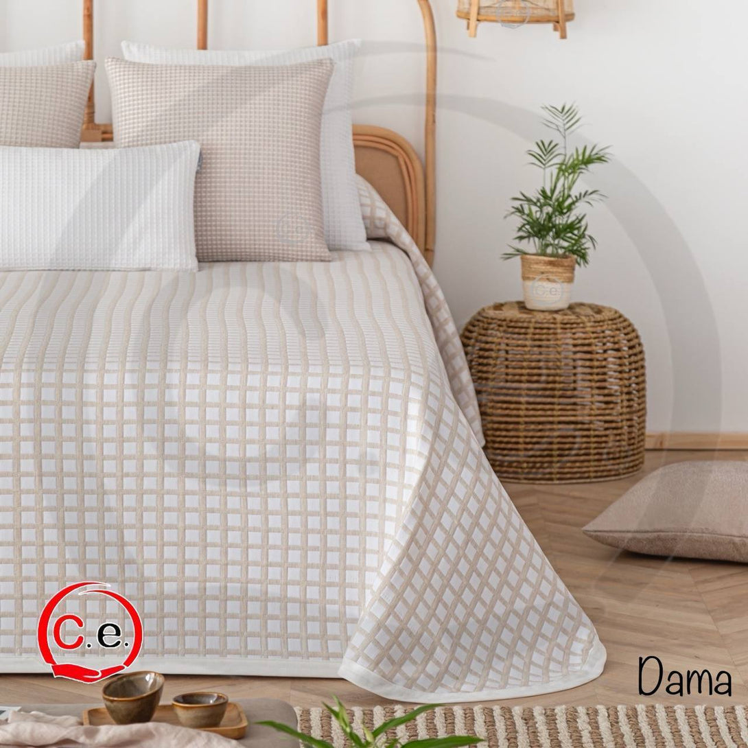 Un disegno geometrico che trasmette ordine e armonia, perfetto per ambienti calmi e curati. Il Copriletto Dama è realizzato in matelassé spagnolo double-face, morbido e resistente, pensato per durare nel tempo.