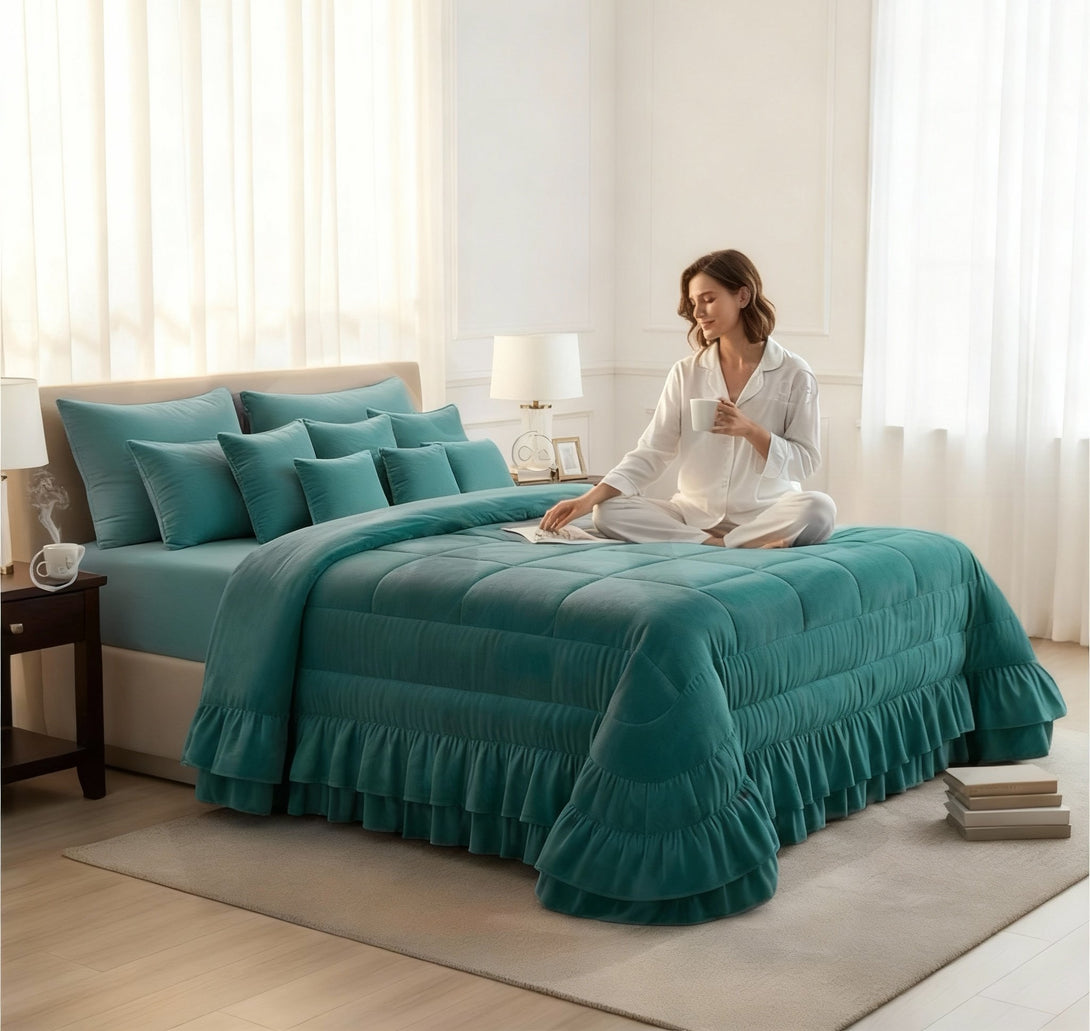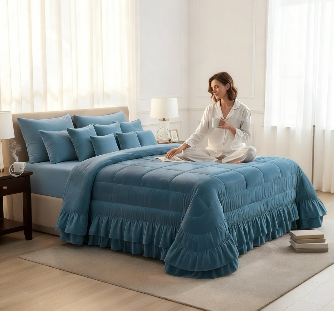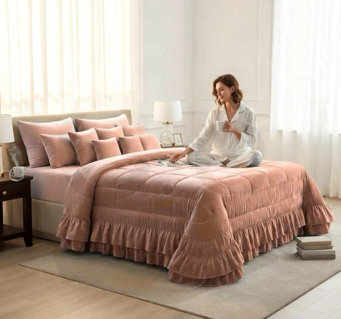 Trapunta Piumone Romantica in velluto con doppia balza