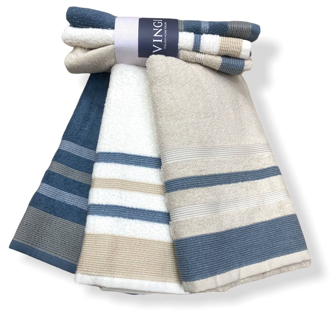 È possibile acquistare solo la confezione da tre asciugamani viso, solo la confezione da tre asciugamani ospiti oppure il completo 3+3.