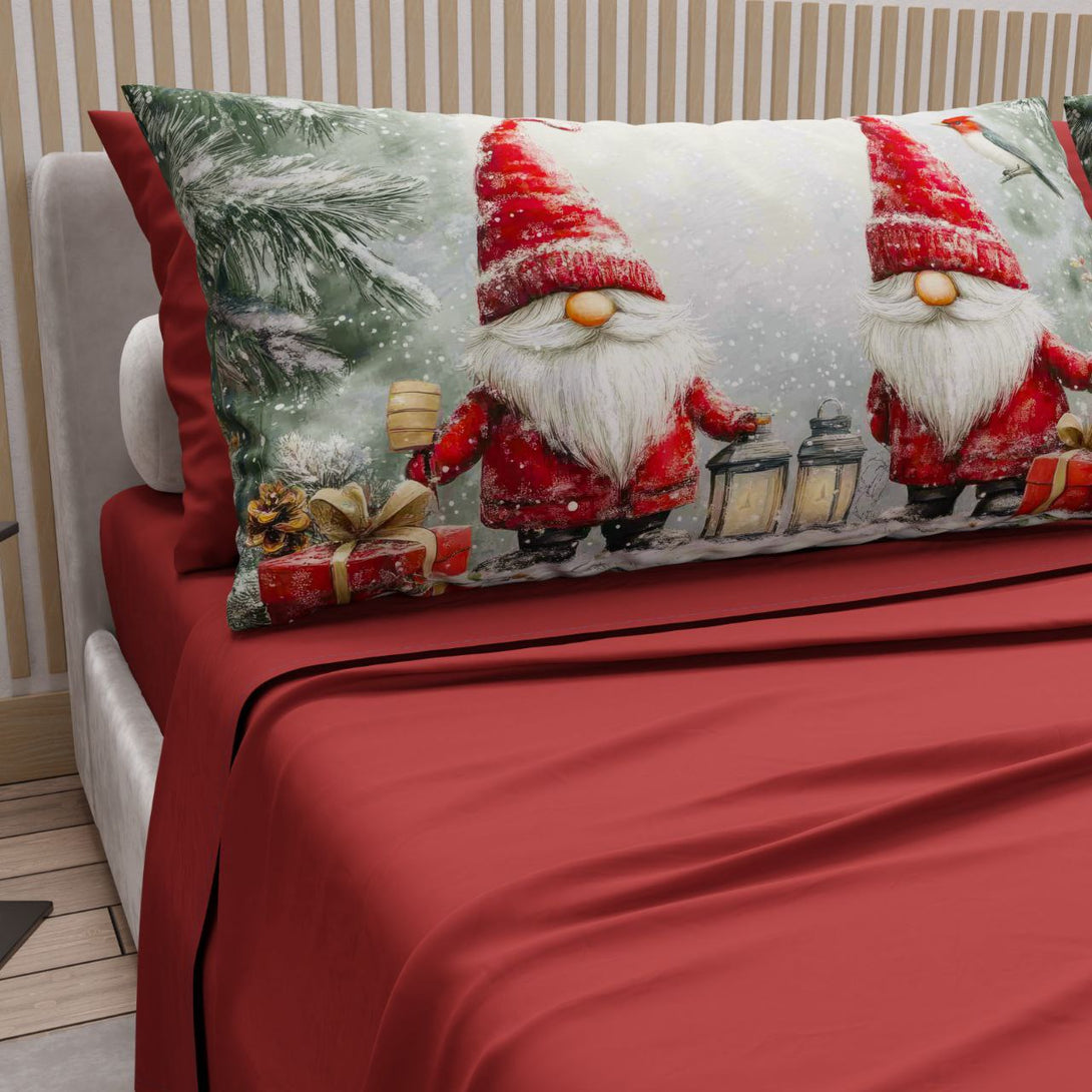 Il Natale porta con sé un'atmosfera unica nel suo genere, ed è per questo che addobbare casa in tema natalizio crea una vera e propria aria di magia. Il completo lenzuola Gnomi, con la sua stampa rappresenta il capo perfetto per arredare il proprio letto durante le festività.