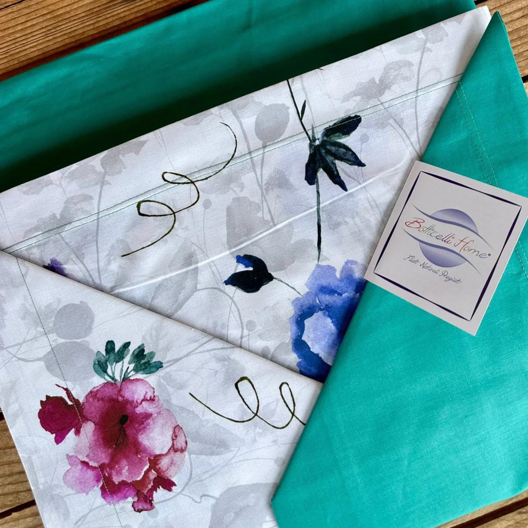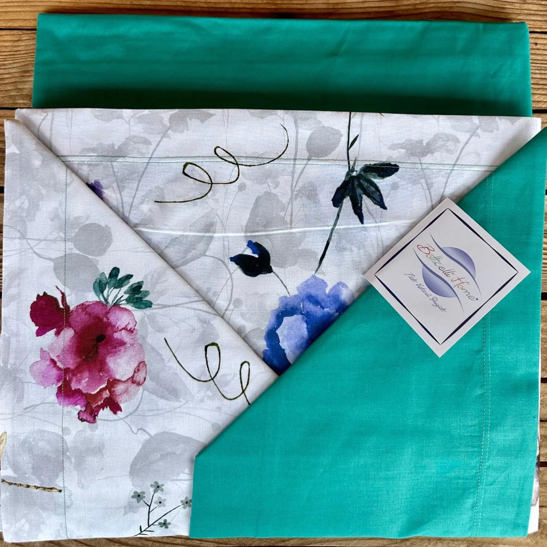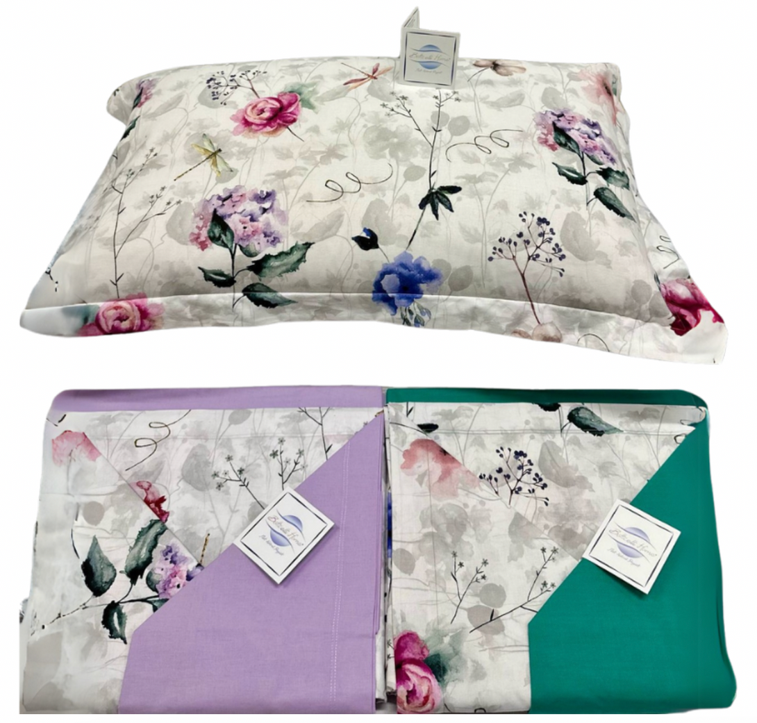 La fantasia floreale in stile acquerello si posa su uno sfondo leggero e vellutato, mentre le federe abbinate e il lenzuolo sotto in tinta unita aggiungono contrasto e armonia visiva. Morbido, traspirante e resistente ai lavaggi, è perfetto per accompagnarti con eleganza in ogni stagione.
