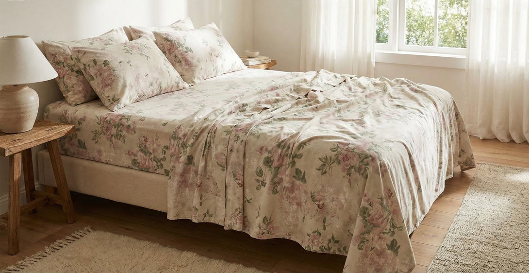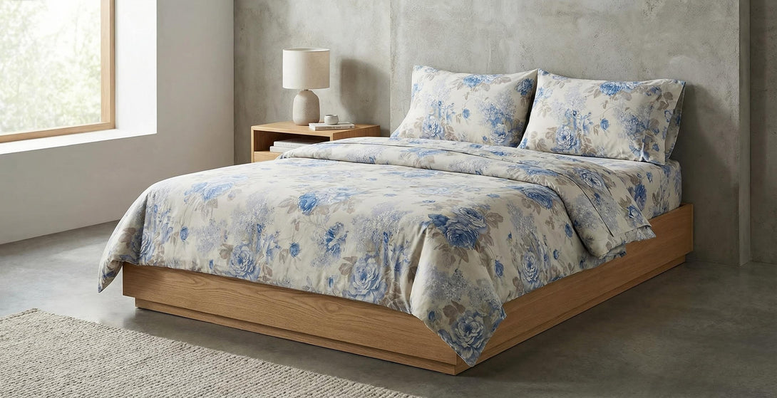 Il Completo Lenzuola Roseto conquista con il suo delicato motivo floreale, un disegno romantico e armonioso che regala un tocco di eleganza senza tempo alla tua camera da letto.
