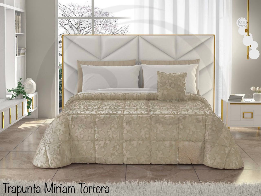 Trapunta Piumone Miriam con lavorazione jacquard e cuscino arredo coordinato